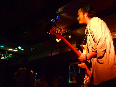 眉間にしわ寄せてます(笑)、Ba.Yasu!